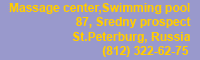 Center, Swimming pool, Hours: 10 a.m.- 8 p.m. (812) 322-62-75 or cellular +7-911-911-66-77 Metro